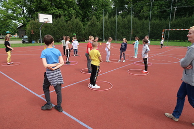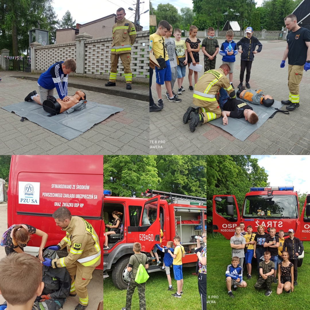 - gra terenowa dla uczniów klas IV-VIII pod hasłem " Pierwsza pomoc ratuje życie" z udziałem druhów OSP Rościszewo,