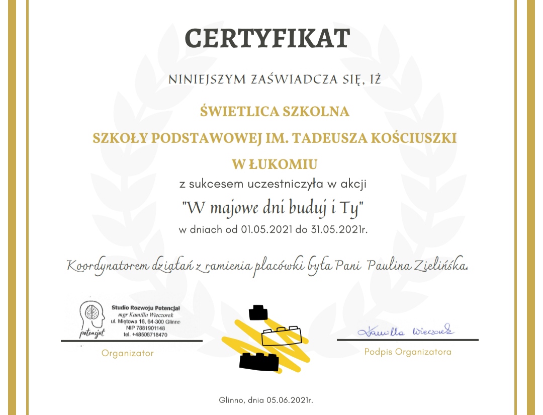W maju Nasza Świetlica przystąpiła do klockowego wyzwania "W majowe dni buduj i Ty" organizowanego przez "Studio Rozwoju Potencjał".