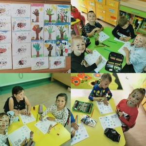 15 września w Naszym Przedszkolu obchodziliśmy Dzień Kropki - święto kreatywności, pokonywania ograniczeń oraz umacniania wiary we własne siły.Tego dnia ubrania dzieci wzbogacone zostały akcentem kropek. Panie zadbały również o bogaty scenariusz zajęć, były zabawy, tańce oraz piękne prace plastyczne :)