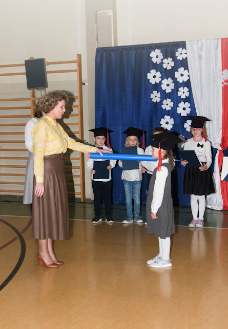 28 października 2021 r. odbyła się w naszej szkole uroczystość pasowania na ucznia. W tym dniu dzieci oficjalnie przyjęte zostały do grona uczniów szkoły. Podczas uroczystości pierwszoklasiści pokazali, że potrafią pięknie śpiewać i recytować wiersze. Najważniejszą częścią uroczystości, na którą wszyscy czekali było ślubowanie oraz pasowanie wielkim ołówkiem przez Dyrektor Szkoły Panią Dorotę Mariańską. Pierwszaki głośno i z przekonaniem przyrzekały być dobrymi i pilnymi uczniami oraz rzetelnie wypełniać swoje obowiązki, o czym przypominać im będą otrzymane dyplomy. Wszystkim pierwszoklasistom w tak ważnym dla nich dniu życzymy wielu sukcesów.