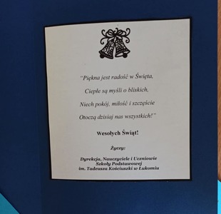Nasza Szkoła w tym roku po raz pierwszy przystąpiła do akcji "Kartka dla Rodaka". Polega ona na wysyłaniu do Rodaków zamieszkałych poza granicami kraju, własnoręcznie wykonanych głównie przez dzieci, świątecznych kartek pocztowych.