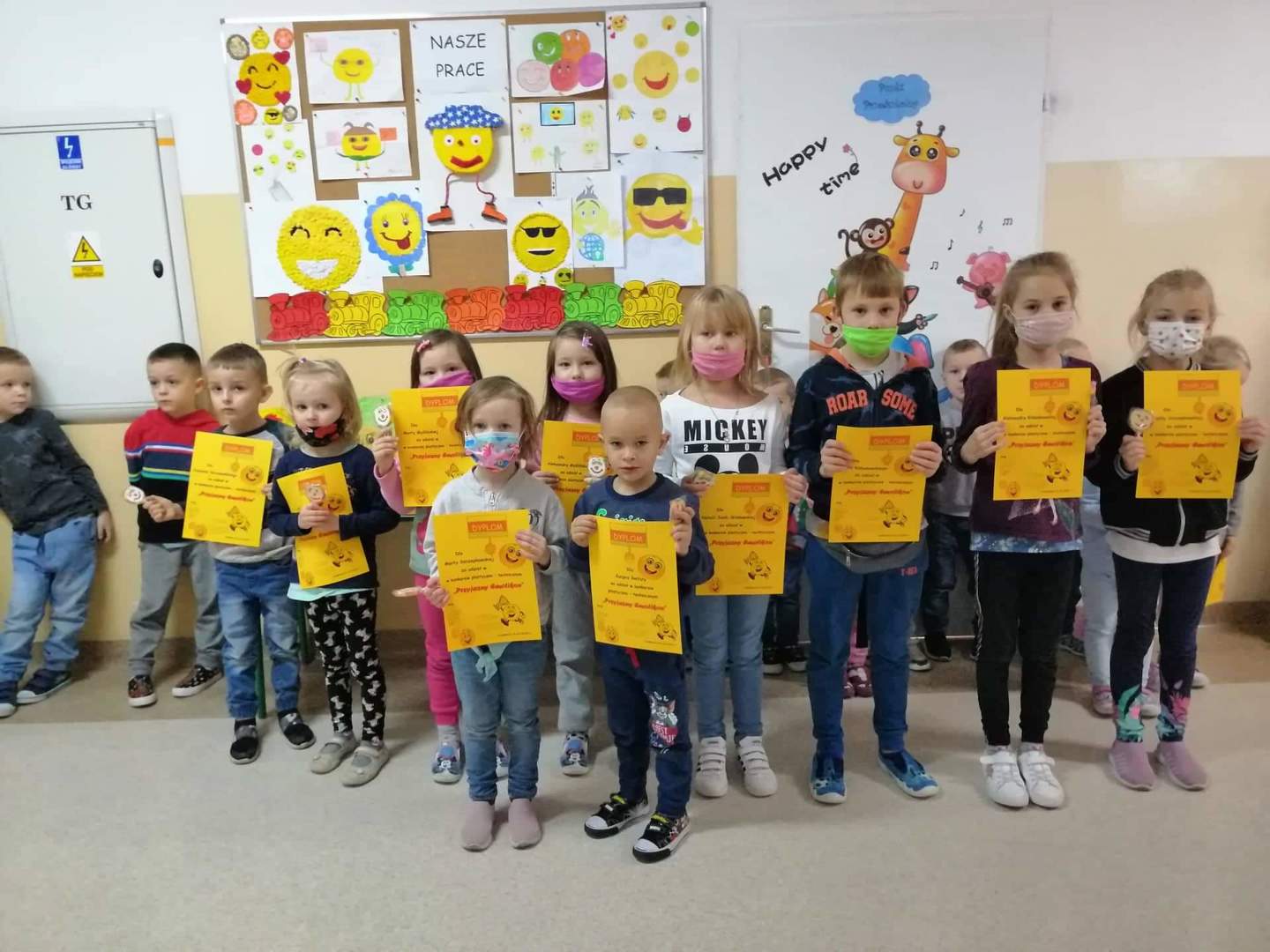Zadaniem dzieci było wykonanie emotki przedstawiającej pozytywne emocje i uczucia nawiązując do zachowania bezpieczeństwa w sieci.