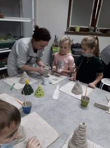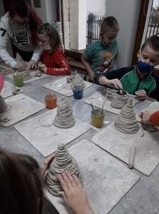W ramach zajęć plastyczno- technicznych uczniowie naszej szkoły uczestniczyli w warsztatach organizowanych przez Pracownię Ceramiczną w Sierpcu. Ponieważ przed nami okres świąteczny, dzieci wykonały gliniane choinki - świeczniki. Miały też okazję zobaczyć piece do wypalania ceramiki oraz wysłuchały , jak przebiega proces wypalania. Podziwiały też prace wykonane przez profesjonalistów. Zajęcia z ceramiki wszystkim bardzo się podobały. Z pewnością to nie ostatnia nasza wizyta w tym miejscu.