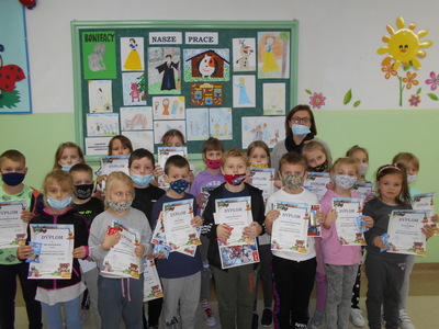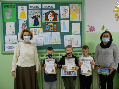 Zadaniem uczestników konkursu było przedstawienie za pomocą środków plastycznych postaci ulubionego bohatera wybranej bajki lub baśni.