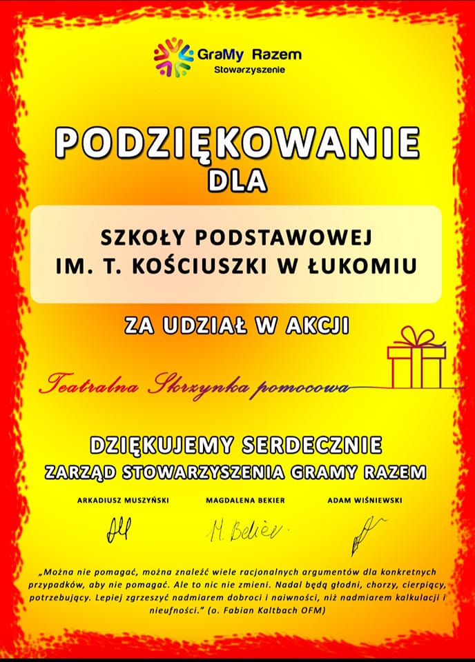 Pragniemy podziękować wszystkim, którzy przyłączyli się do akcji "Pomocowa skrzynka teatralna", której celem było zebranie artykułów dla osób w kryzysie bezdomności. Jesteśmy wszystkim bardzo wdzięczni za okazane serca i pomoc. Wierzymy, że całe to dobro wróci do Was ze zdwojoną siłą.