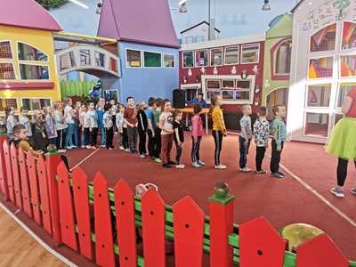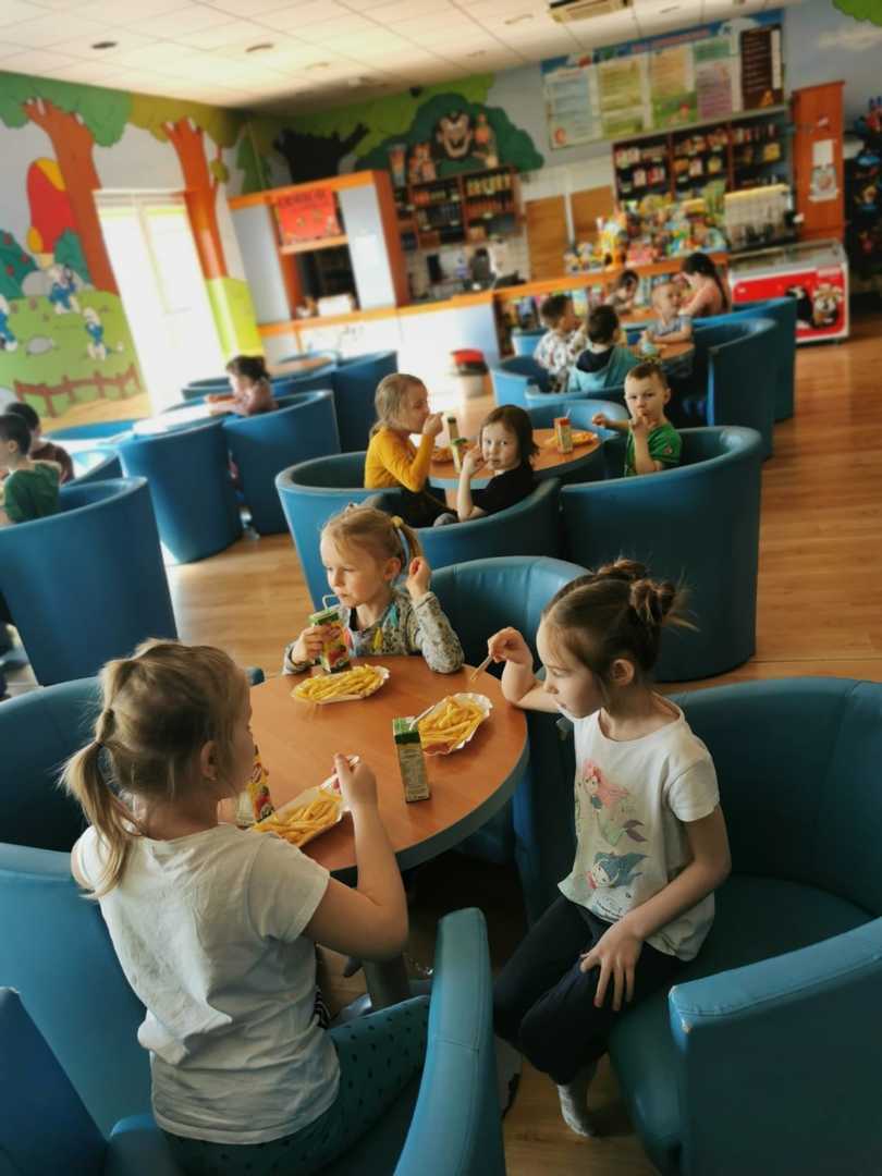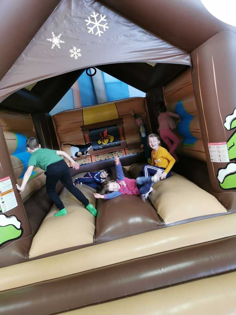 Po wejściu na salę dzieci z wielką ochotą korzystały z atrakcji, takich jak: mini pojazdy, dmuchańce, skakańce, basen z piłeczkami, zjeżdżalnie itp. Liczne atrakcje sprawiły, iż czas przeznaczony na zabawę minął bardzo szybko. Wszyscy zmęczeni, ale szczęśliwi wrócili do szkoły !