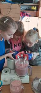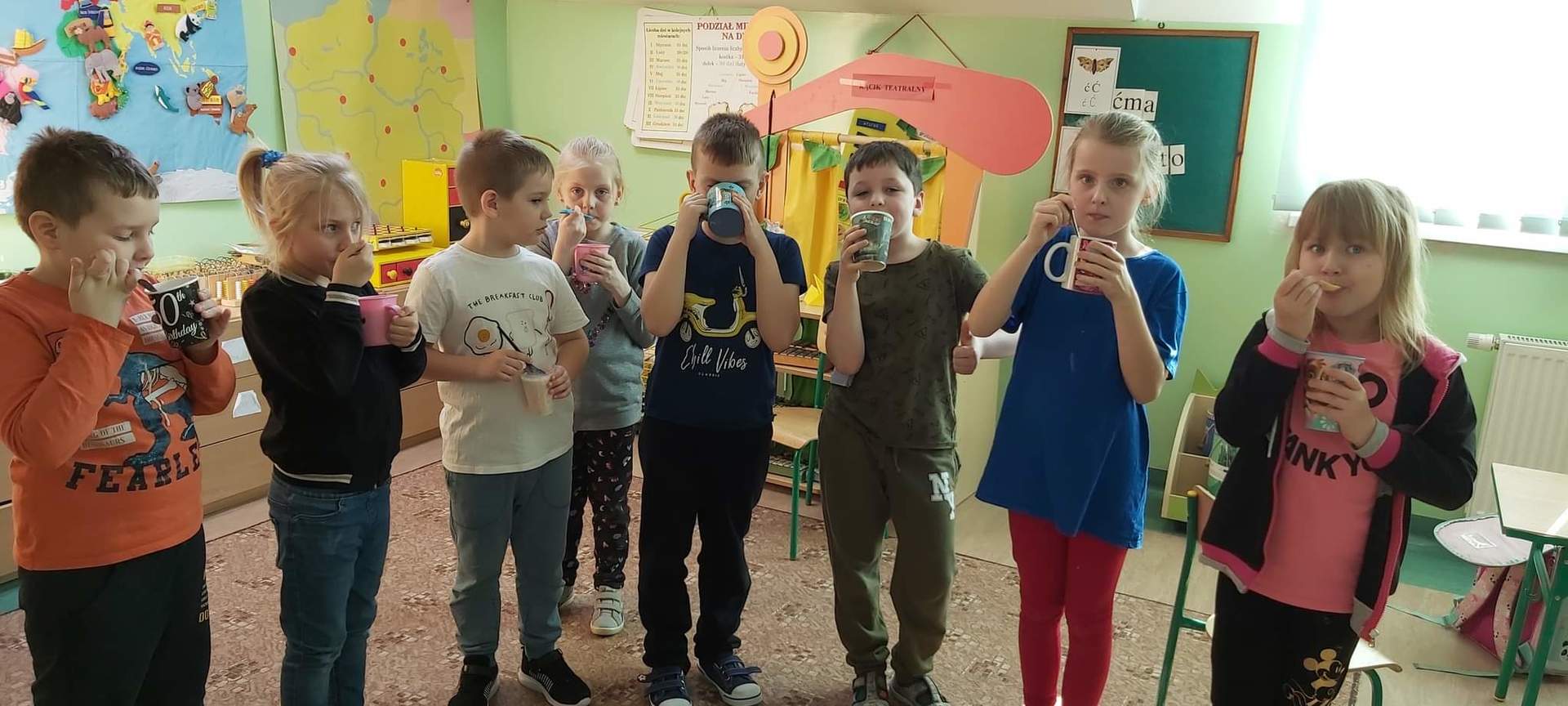 W klasach I-III dzieci wykonały pyszne koktajle oraz owocowe, warzywne szaszłyki. Wzięły również udział w konkurencjach sportowych. W ten sposób dowiedziały się jak smaczne i zdrowe mogą być nasze codzienne przekąski.