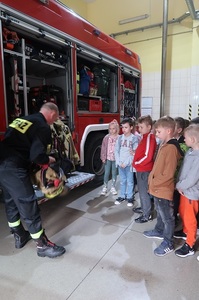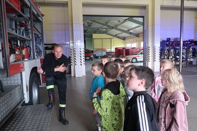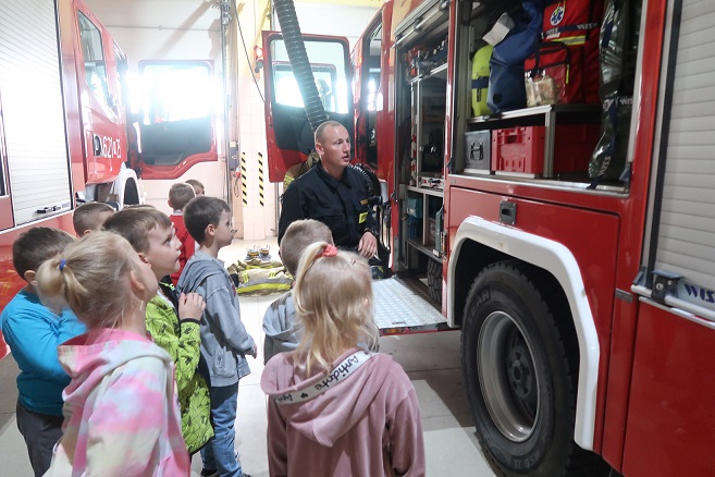 Dzieci z klas I-III wybrały się do Państwowej Straży Pożarnej w Sierpcu. Celem było zwiedzanie budynku oraz zapoznanie się z pracą strażaka.