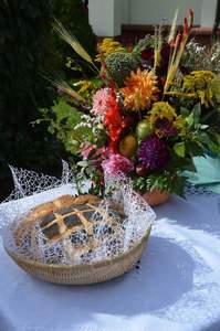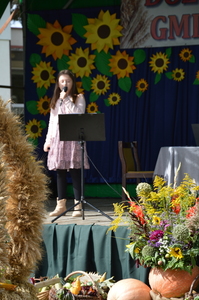 Takie życzenia nasi uczniowie złożyli Rolnikom podczas gminnych uroczystości dożynkowych, które w tym roku odbyły się w Łukomiu. Rolnicze święto uświetniliśmy częścią artystyczną. Był zabawny skecz , taniec , nie zabrakło także piosenek, w których podkreślono piękno ,,małej Ojczyzny ". Staraliśmy się też uhonorować święta plonów pięknymi dekoracjami, na które złożyły się zbiory z pól, ogrodów i łąk.