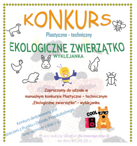 "Ekologiczne zwierzątko" - Szkolny Konkurs plastyczno-techniczny dla dzieci z Punktu Przedszkolnego i Oddziału Przedszkolnego oraz dla uczniów klas I - III.