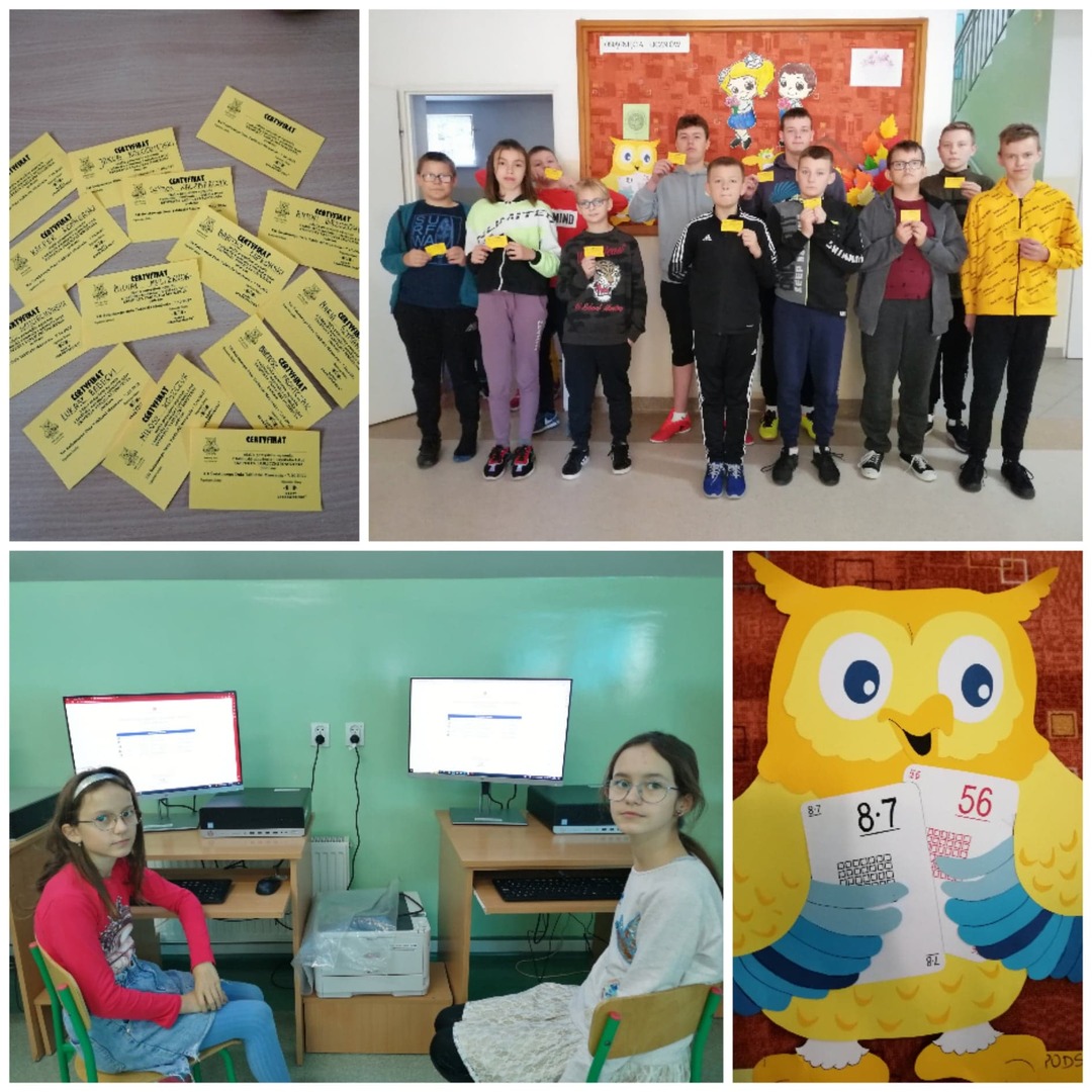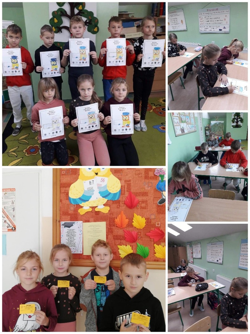 7 października w naszej szkole obchodziliśmy Światowy Dzień Tabliczki Mnożenia. Najmłodsi uczniowie i dzieci z Oddziału Przedszkolnego rozwiązywały karty pracy, a uczniowie klasy III przystąpili po raz pierwszy do egzaminu z tabliczki mnożenia. Uczniowie klas IV – VIII zmierzyli się z czasem, nie tylko podczas zdawania egzaminu z tabliczki mnożenia, ale także w rozwiązywaniu zadań w mini pokoju zagadek. Pierwsze zadanie polegało na odnalezieniu kopert z zadaniami ukrytymi w klasie. Następnie pracując w grupach uczniowie rozwiązywali matematyczne zagadki. Poprawne rozwiązania zadań umożliwiły uczniom wpisanie kodu do kłódki, której otwarcie dało możliwość zdania egzaminu z tabliczki mnożenia online. Uczniowie z zaangażowaniem rozwiązywali zagadki, a wpisywanie kodu do kłódki wywołało dużo emocji. W rozwiązywaniu zagadek najlepszy wynik uzyskały klasa V i VI, natomiast klasa VIII zdała najlepiej egzamin online z tabliczki mnożenia. Podczas kolejnych przerw uczniowie mogli przystąpić do egzaminu w wersji tradycyjnej.
