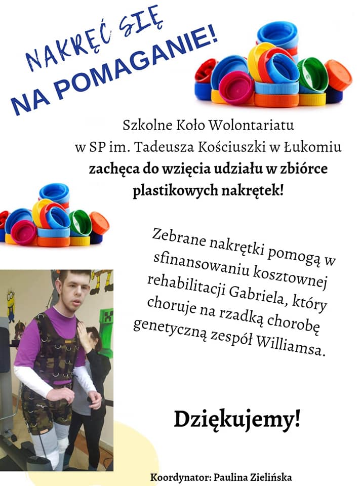 Akcja "Nakręć się na pomaganie " Cały czas w naszej szkole trwa akcja "Nakręć się na pomaganie" - zachęcamy do wzięcia udziału w akcji i przekazanie korków na szczytny cel. Szczegóły na plakatach poniżej. ZAPRASZAMY! Zdjęcia Zobacz również Serdeczne życzenia dla Babci i Dziadka Dzień Profilaktyki w naszej szkole - relacja Być jak Ignacy Akcja "Nakręć się na pomaganie " REKRUTACJA na rok szkolny 2023/2024 Zimowe spotkania z teatrem 29 stycznia 2023 Aktualności Wydrukuj Udostępnij Wyświetlono: 146