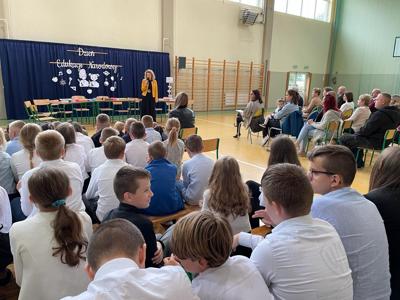 Dzień Edukacji Narodowej to święto wszystkich, którzy tworzą szkolna społeczność. Członkowie Koła Teatralnego uświetnili ten wyjątkowy dzień zabawnym skeczem i piosenką. Wiele ciepłych i miłych słów popłynęło w kierunku nauczycieli, pracowników szkoły i rodziców. Uczniowie docenili codzienny trud pracy nauczyciela, jego troskę o dobro wychowanków. Życzyli dalszego zapału do pracy, satysfakcji, a także społecznego uznania. W dowód wdzięczności przygotowali drobne upominki. 🌹🌸🌷🌻