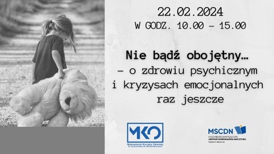 Zachęcamy rodziców do zapoznania się z ofertą Mazowieckiego Kuratora Oświaty w Warszawie dotyczącą udziału w konferencji na temat "Nie bądź obojętny... - o zdrowiu psychicznym i kryzysach emocjonalnych raz jeszcze".