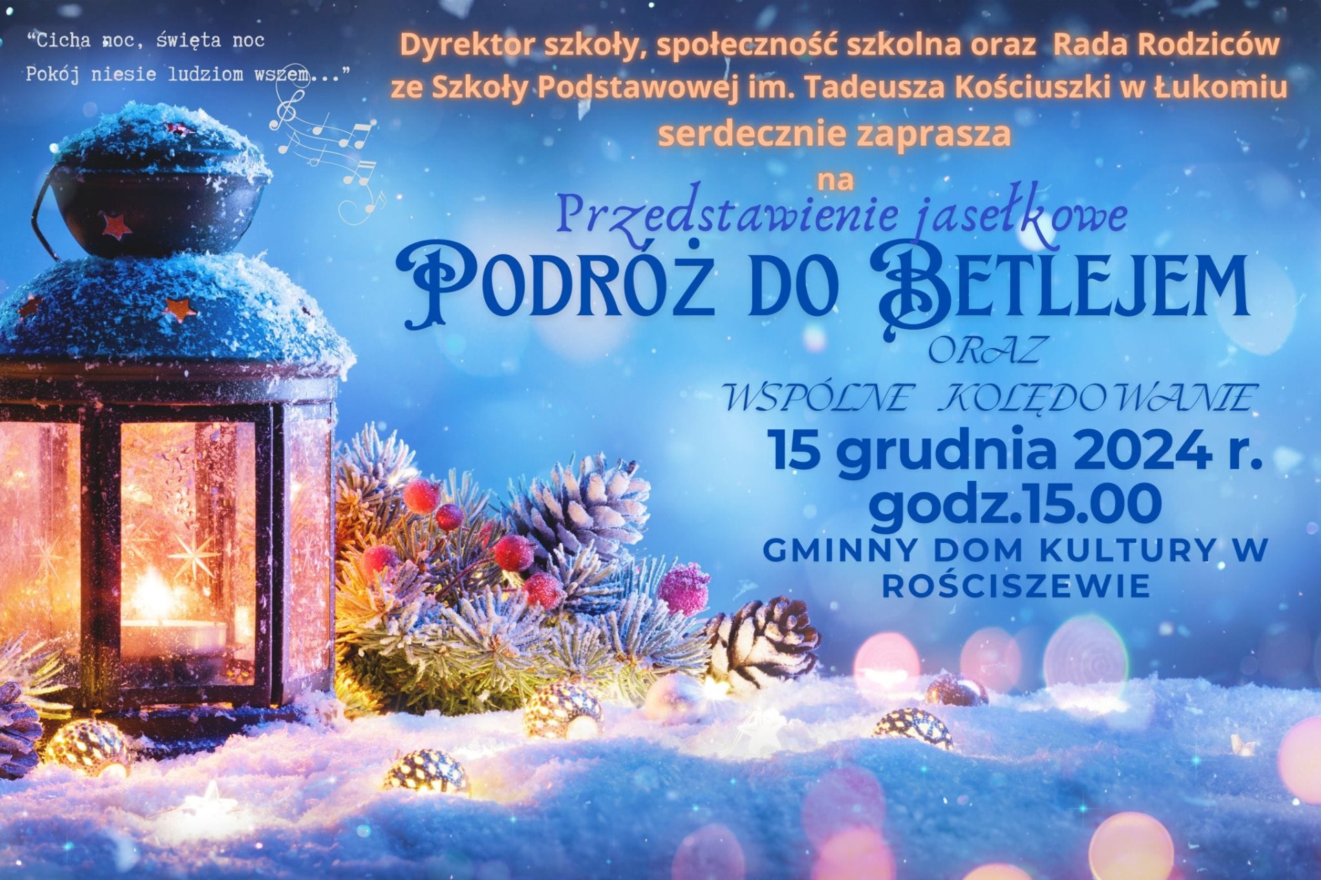 Zaproszenie Zdjęcia Przypięta galeriaJasełka 2024 Zobacz więcej Zobacz więcej Zobacz również Mały Mistrz Aktywny do kwadratu Mikołajki Zaproszenie Podróż do Betlejem - przedstawienie jasełkowe Wesołych Świąt 05 grudnia 2024 Aktualności Wydrukuj Udostępnij Wyświetlono: 108