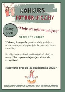 Zachęcamy uczniów naszej szkoły do udziału w konkursie fotograficznym "Moje szczęśliwe miejsce" - z okazji Światowego Dnia Zdrowia Psychicznego.