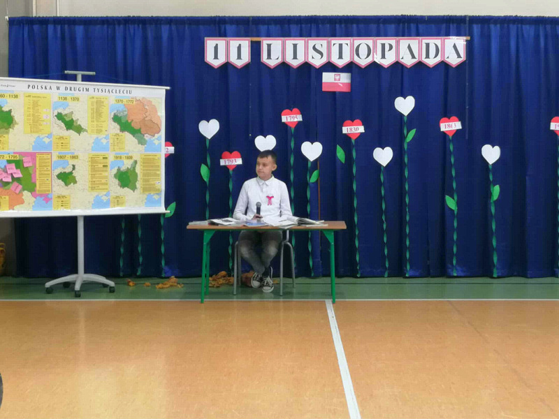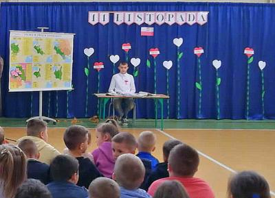 Podczas specjalnie przygotowanej akademii uczniowie przypomnieli najważniejsze wydarzenia prowadzące do odzyskania niepodległości przez Polskę. Ich występy były pełne historycznych odniesień, które pozwoliły nam lepiej zrozumieć trudności, jakie musieli pokonać nasi przodkowie, by nasz kraj mógł cieszyć się wolnością. Całości dopełniły słowa pięknie zaśpiewanej piosenki w wykonaniu uczennic klasy VI „Co tojest niepodległość”
