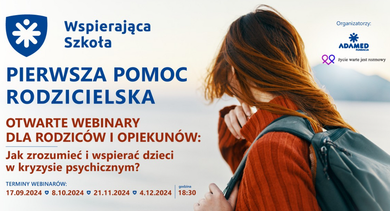 16 września 2024 Aktualności Webinary dla rodziców - PIERWSZA POMOC RODZICIELSKA Razem z Fundacją Adamed zapraszamy na cykl otwart Czytaj więcej